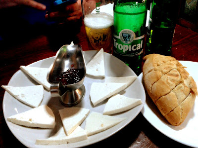 Tras recorrer sus calles nos detuvimos en un bar con buena pinta, el Bodegón Don Carmelo, para tomar cerveza y zumo, pero no nos convencieron las tapas. La peque disfrutó durante un rato en un parque y, cuando el estómago comenzaba a protestar, nos marchamos a Pájara. Breve paseíto y bar detectado: restaurante "La Fonda", junto a la iglesia. Pedimos "ropavieja", que no habíamos probado todavía, "carne compuesta" y queso majorero, acompañados de una buena cerveza “Tropical” y un refresquito para nuestra peque.